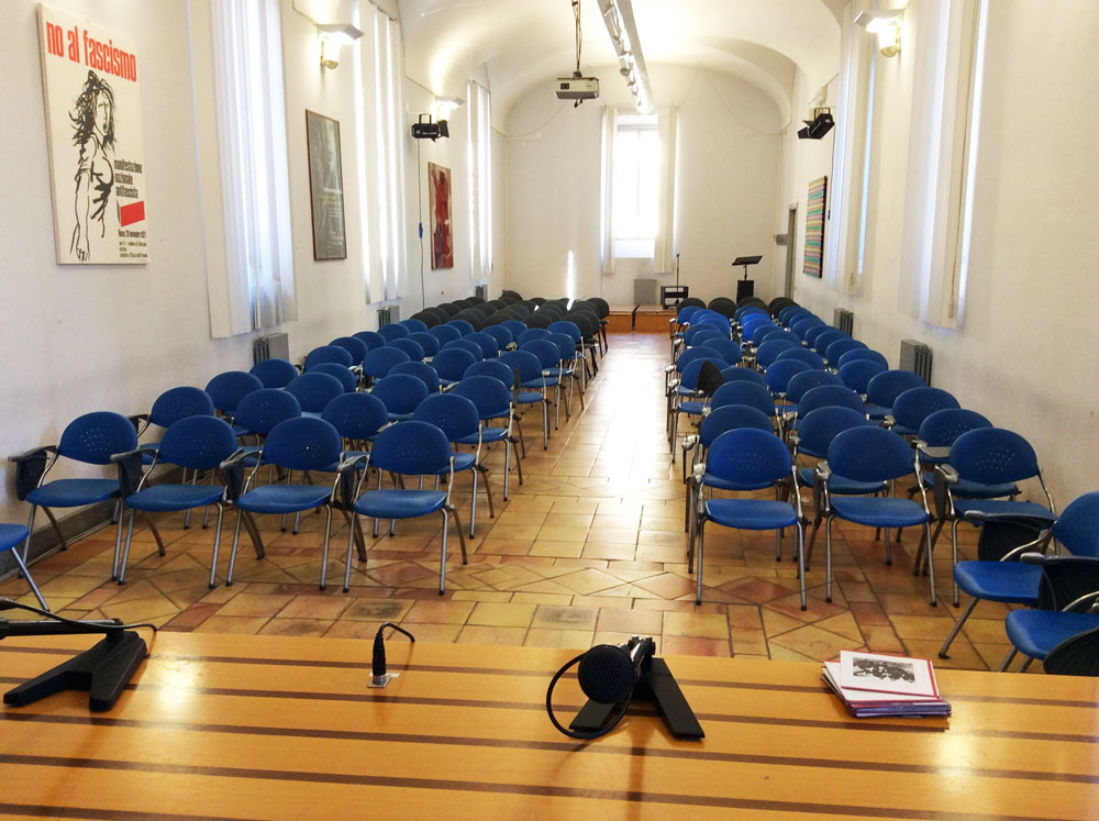 Sala posta al piano terra è particolarmente richiesta per corsi di formazione e riunioni, dotata di sedie a platea e lavagna magnetica.